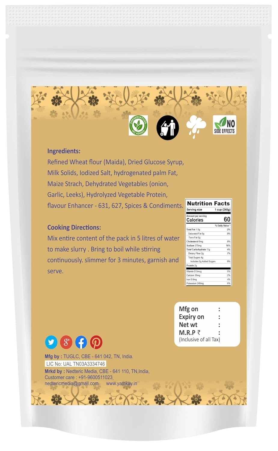 • Quick & Easy to Prepare: Just mix with hot water and cook for 3–5 minutes.