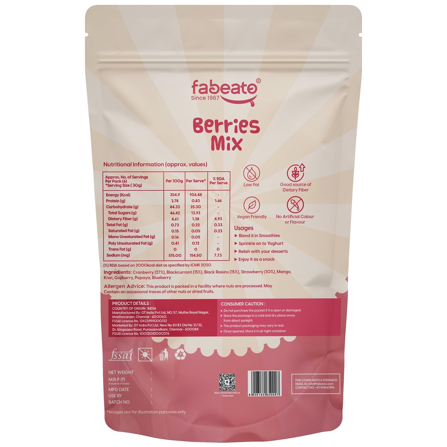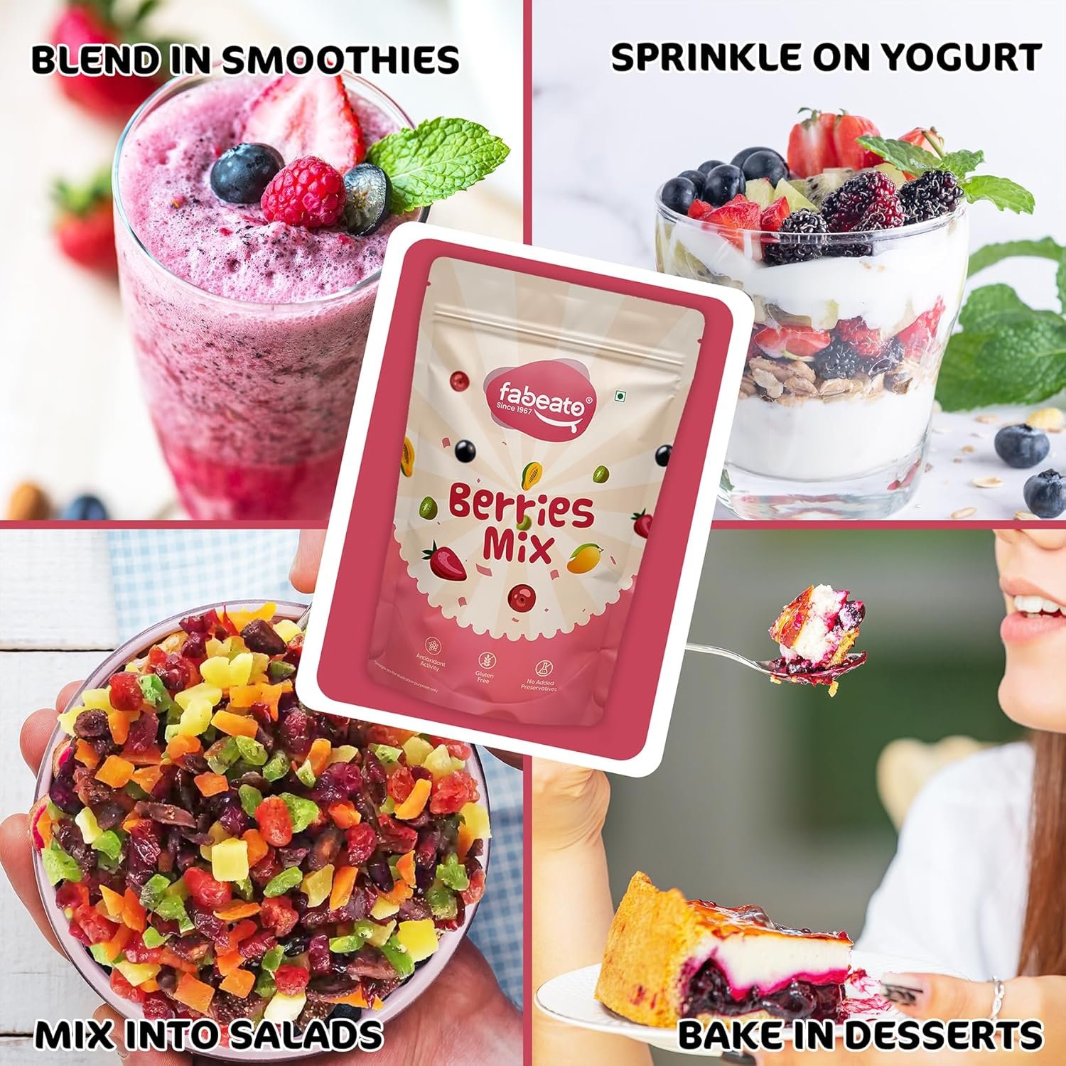 Whether you enjoy it as a snack, a topping for oatmeal or yogurt, or a nutrient boost in smoothies, Fabeato Berries Mix delivers freshness and flavor in every bite.