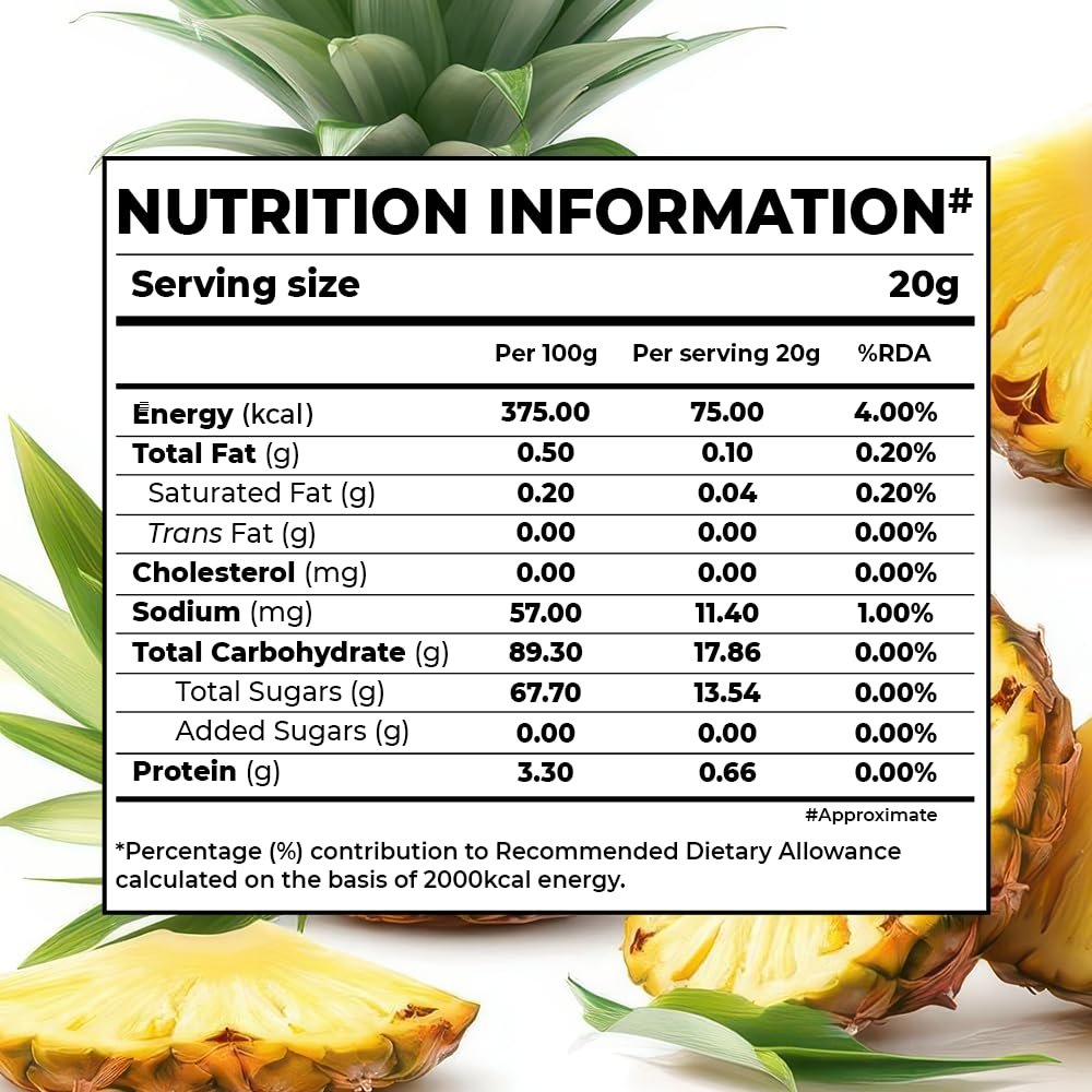 Using advanced freeze-drying technology, these pineapple chunks retain their original flavor, color, and 97% of nutrients, making them a delicious and healthy on-the-go snack.