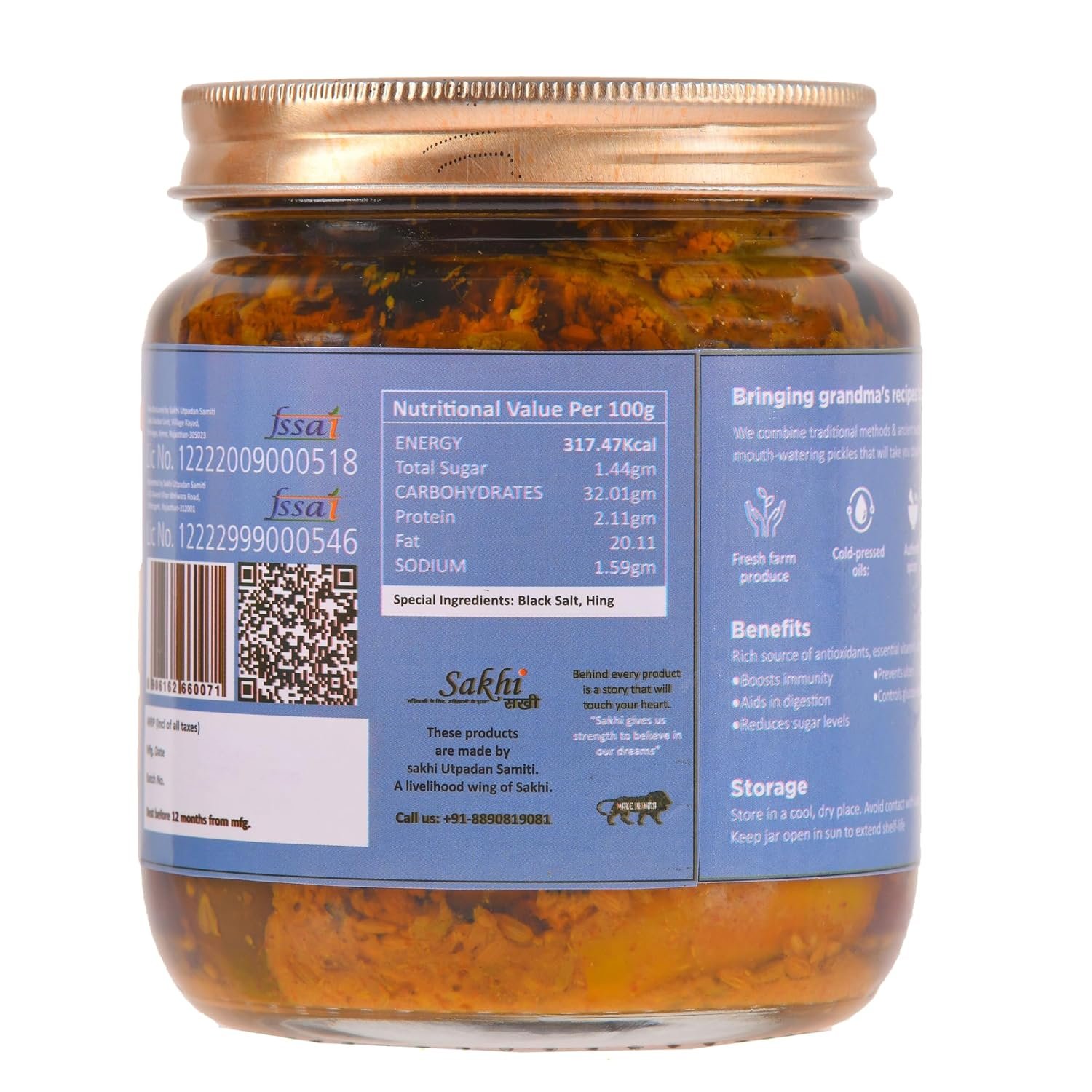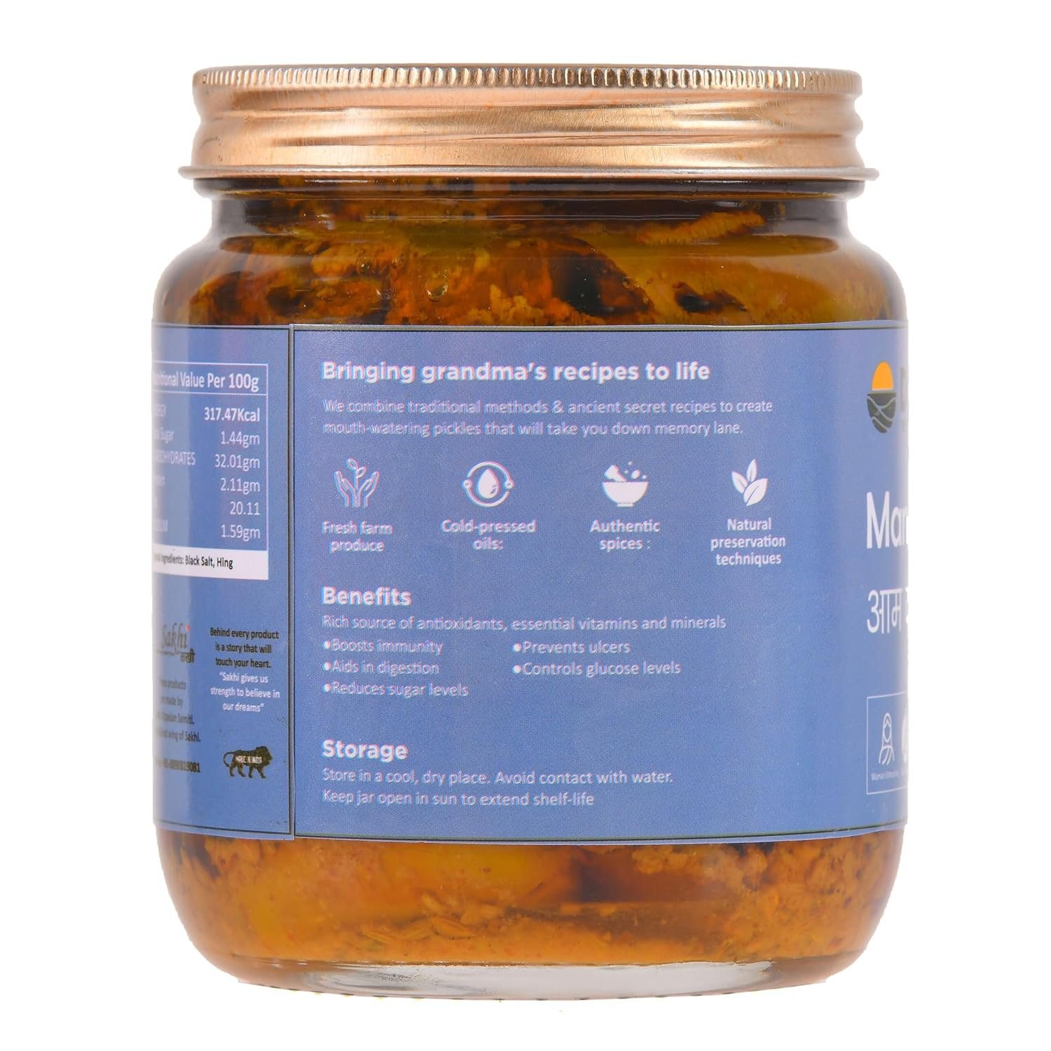 Each jar of Daichi Mango Pickle is crafted with care in small batches, using in-house spice blends and pure cold-pressed mustard oil to preserve freshness and enhance aroma — all while keeping the oil content minimal. The result is a rich, flavorful, and preservative-free pickle that adds a delicious kick to your rotis, rice, parathas, or snacks.