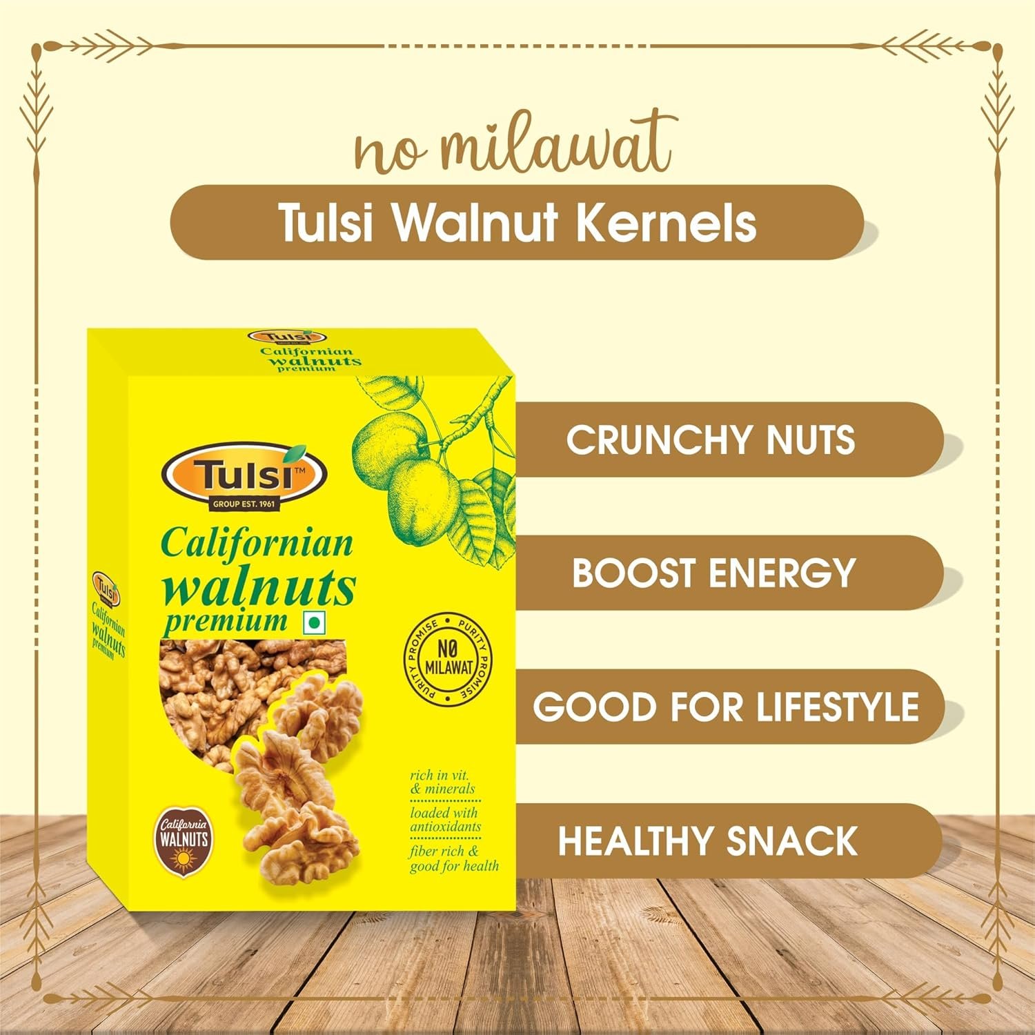 Tulsi walnuts, Tulsi walnut kernels, California walnut halves, premium walnuts, shell-free walnuts, large walnut halves, light-colored walnuts, akhrot giri, dry fruits, healthy snacks, brain food nuts, omega-3 rich nuts, antioxidant rich nuts, protein rich nuts, dietary fibre walnuts, heart healthy snack, crunchy nuts, natural walnuts, premium dry fruits, 100% natural walnuts, vegan snacks, gluten free nuts, walnuts for baking, walnuts for smoothies, walnuts for cereals, walnuts for salads, fresh walnuts, best quality walnuts, nutritious snacks, healthy munchies, fitness snacks, post workout snacks, omega rich dry fruits, raw walnut halves, clean eating snacks, low fat snack, immunity booster food, energy rich snacks, natural snack food, Tulsi dry fruits, premium quality akhrot, healthy lifestyle snack, organic walnuts, natural protein source, walnut snacks India, premium walnuts online, walnut for desserts, superfood nuts, healthy brain food, wellness snacks.