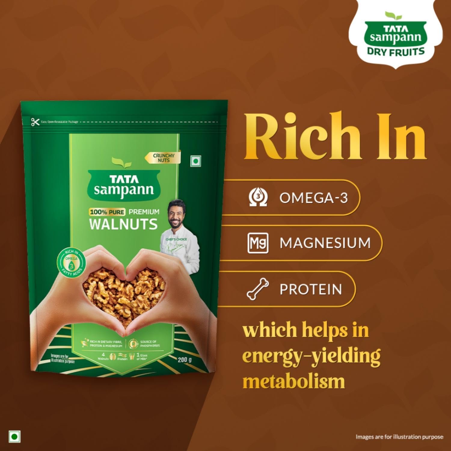 Tata Sampann walnuts, Tata Sampann akhrot, premium walnuts, natural walnuts, dry fruits, healthy snacks, omega 3 rich food, protein rich food, fibre rich nuts, magnesium rich dry fruits, low cholesterol snacks, nutritious dry fruits, heart healthy snacks, brain booster food, antioxidant rich nuts, vegan dry fruits, gluten free snack, plant based protein, natural energy booster, healthy lifestyle snacks, premium quality dry fruits, 100% natural walnuts, pure akhrot, crunchy walnuts, Tata Sampann dry fruits, best quality walnuts, organic walnuts, raw walnuts, everyday nutrition, immunity booster food, post workout snack, fitness snacks, superfoods, clean eating snacks, fresh walnuts, heart friendly food, healthy munchies, premium nuts, low fat snack, omega 3 fatty acids, vitamin rich dry fruits, pure dry fruits, Tata Sampann healthy food, healthy brain food, dry fruit mix, energy rich snack, walnuts for baking, walnuts for salads, walnuts for desserts, natural protein source, healthy dry fruits India.