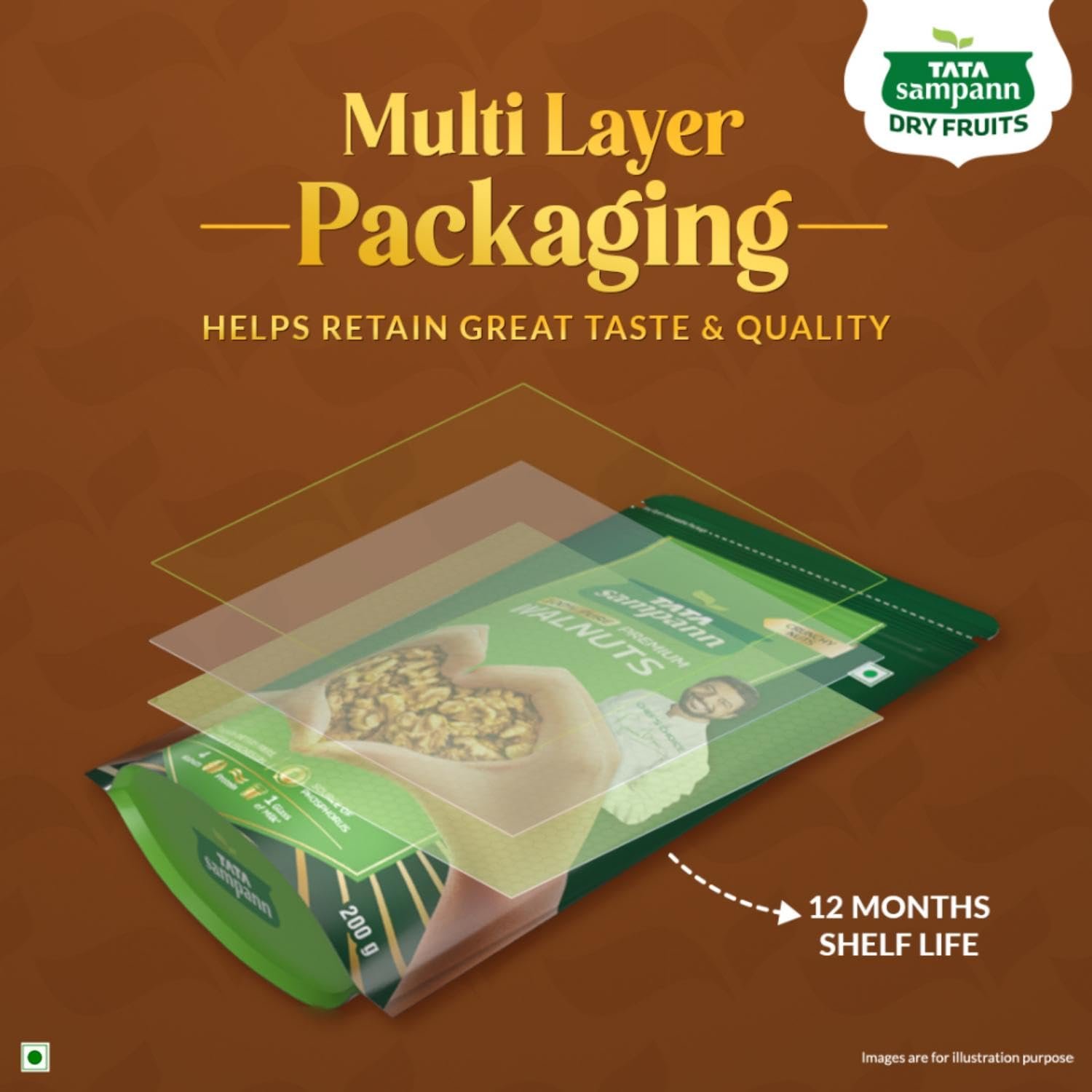 Free from preservatives, additives, and artificial colors, Tata Sampann Walnuts are 100% natural and plant-based — a truly healthy snack for all age groups. Enjoy them daily for a boost of nutrition, energy, and taste that only Tata Sampann can deliver.